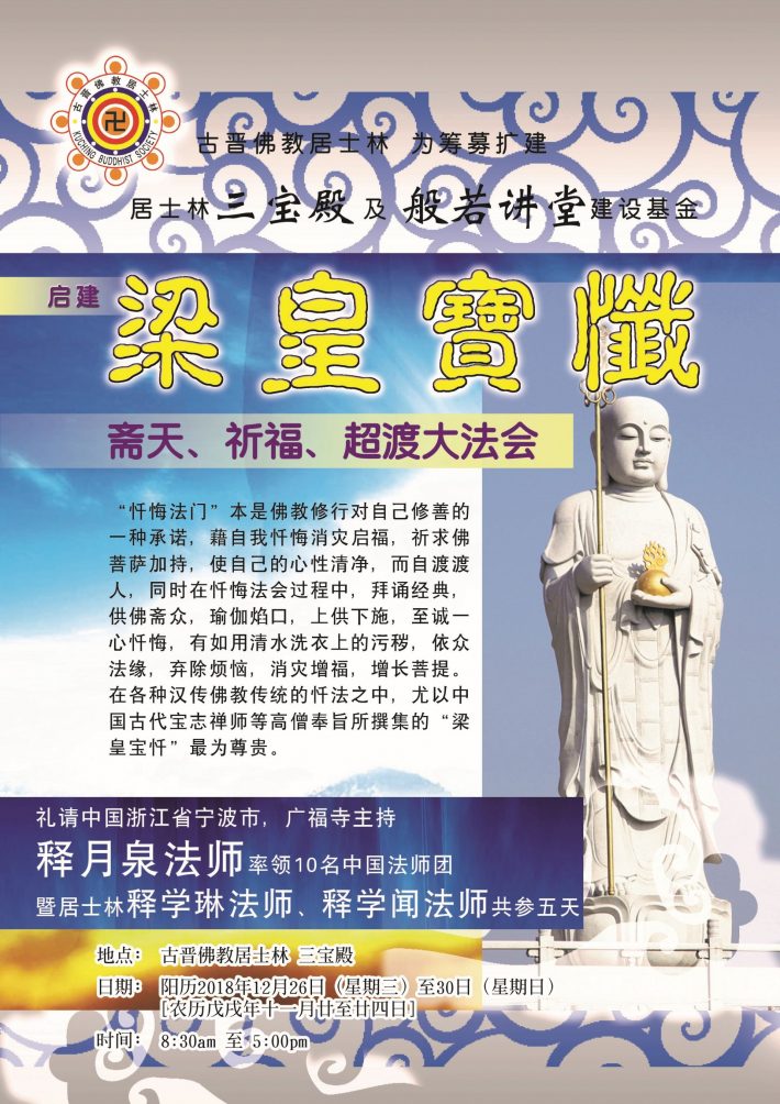 古晋佛教居士林在本年12月26日起举行为期五天的梁皇宝忏祈