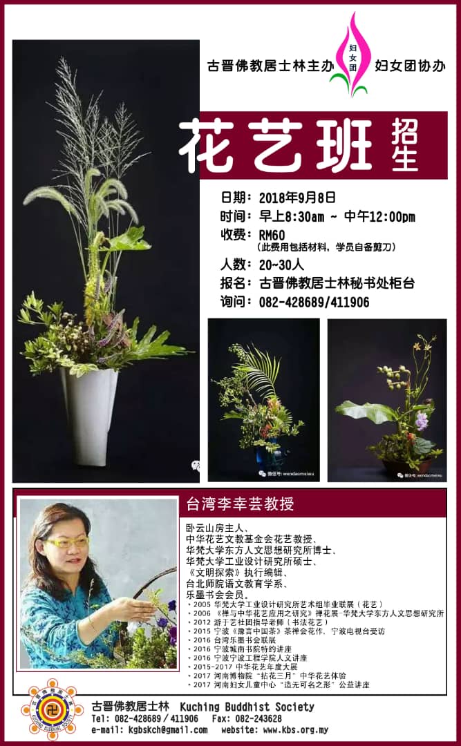 敬请各善信即时报名参加,请向古晋佛教居士林秘书处或柜台询问及索取报名表格,电话:082-428689及411906,欢迎善知识大众参与共修,建寺供养功德,共结殊胜法缘,同沾法益。
